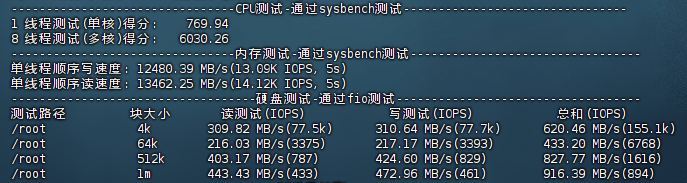 - 磁盘I/O出色:4K随机读写达到144.4k IOPS,1M顺序读写764.68 MB/s