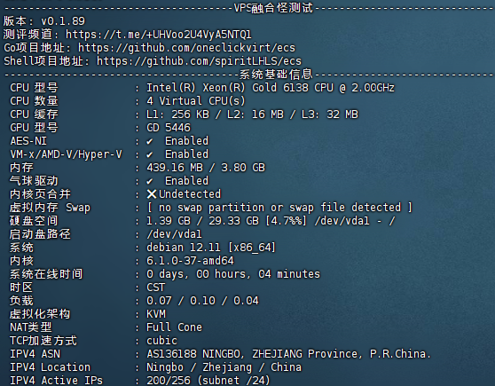 从基础信息看,这是一台配置均衡、环境纯净的KVM虚拟化云服务器,为后续的性能测试做好了准备。
