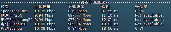 就近节点测速结果充分体现了宁波电信节点的优势: